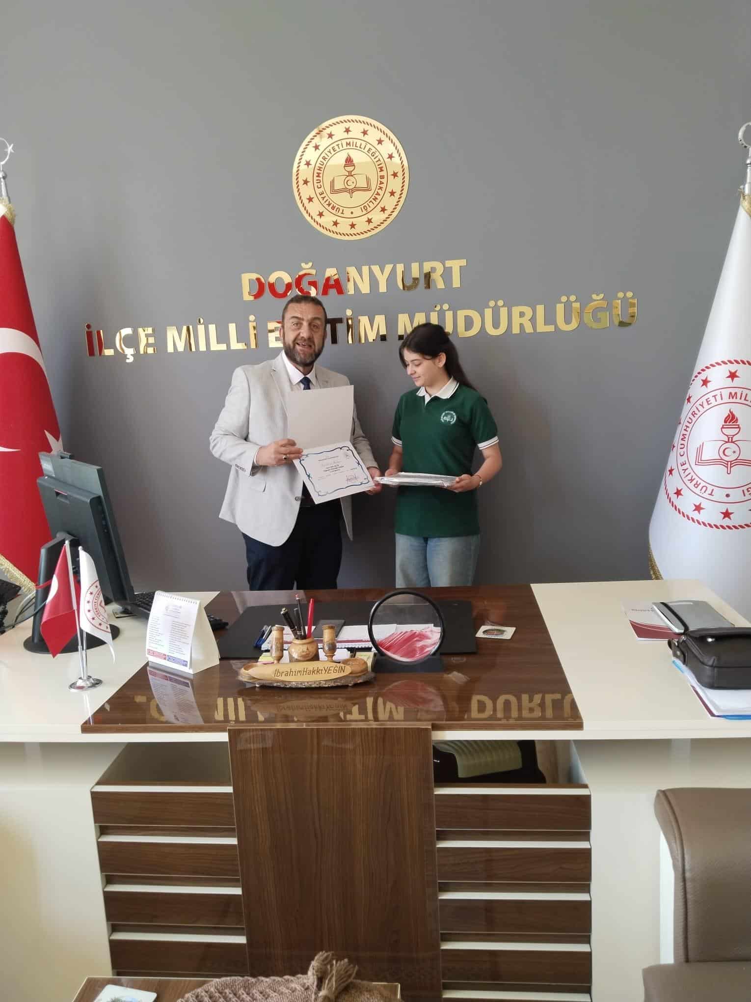 İlçe Milli Eğitim Müdürümüz İbrahim Hakkı YEĞİN Dilimizin Zenginlikleri projesi 'Resim Çiz' yarışmasında il birincisi olan Doğanyurt Yatılı Bölge Ortaokulu 6. Sınıf öğrencisi Nehir Işık Taş'ı ödüllendirdi, öğrencimizi tebrik edip başarılar diledi.